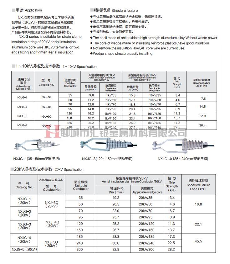 • 產(chǎn)品:NXJG系列楔型絕緣耐張線夾(鋁絞線架空絕緣電纜用
